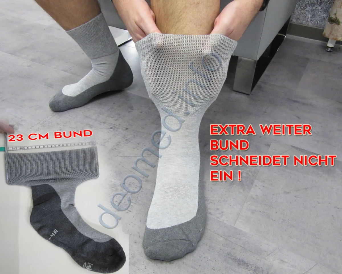 Achtung: Dieser Strumpf hat einen extrem dehnbaren Bund (bis 54cm). Er ist ausschließlich für dicke, bzw. geschwollene Beine gedacht, da er sonst rutschen kann. Die Socken gehen beim Waschen NICHT ein!